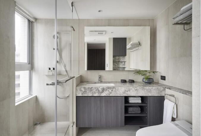 绿色植物本身具有净化空气的作用。在浴室里放几盆绿色植物不仅能有效去除异味,还能提高整体外观水平。