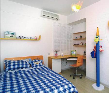 其二:儿童房的空间选择 儿童房空间应尽量显得宽敞,这样可以有良好的视觉效果,同时,也能够为儿童提供足够的游戏空间。所以在选择儿童房家俱时,同样也要注意体积的大小。若是卧房空间不够,则注意不可装潢得太过复杂,至少要让空间看起来比较大。同时,也可以用颜色来扩充房间。选择乳酪色、天蓝色的墙面都能够使空间看起来更加舒适可爱,同时也能增加视觉的开阔度。灰色和褐色等冷色调会给人一种冷森的感觉,容易让孩子变得沉闷。