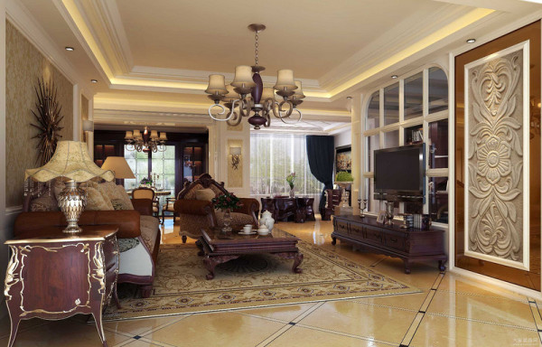 1. 欧式风格向我们展示了一种华丽的装饰,给我们带来了强烈的色彩和精致的造型感。客厅顶部通常用大灯池装饰,整个客厅氛围通过华丽的枝形吊灯适当营造。