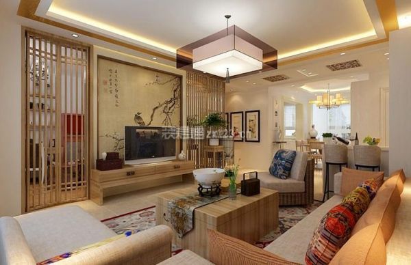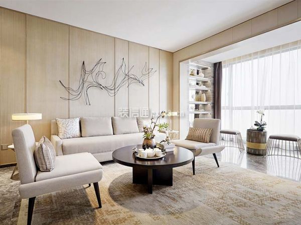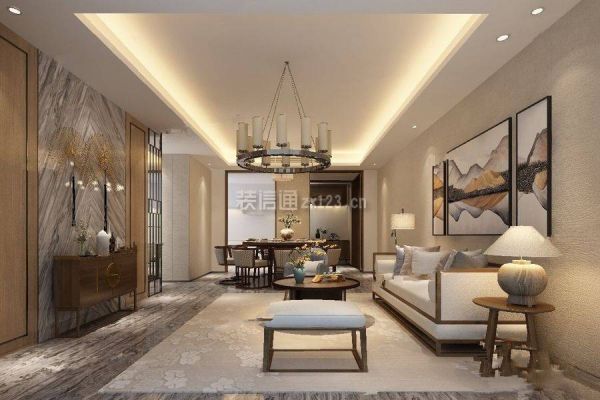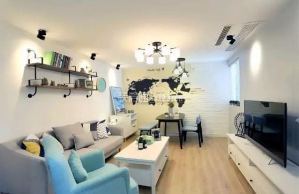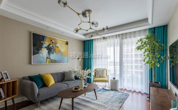 北欧风装修的客厅,整体的硬装非常简单,为了提升空间的装修档次,可以进行适当的吊顶设计,再搭配一盏造型时尚的吊灯,营造出的家居氛围会更加的温馨。墙面刷上土黄色乳胶...